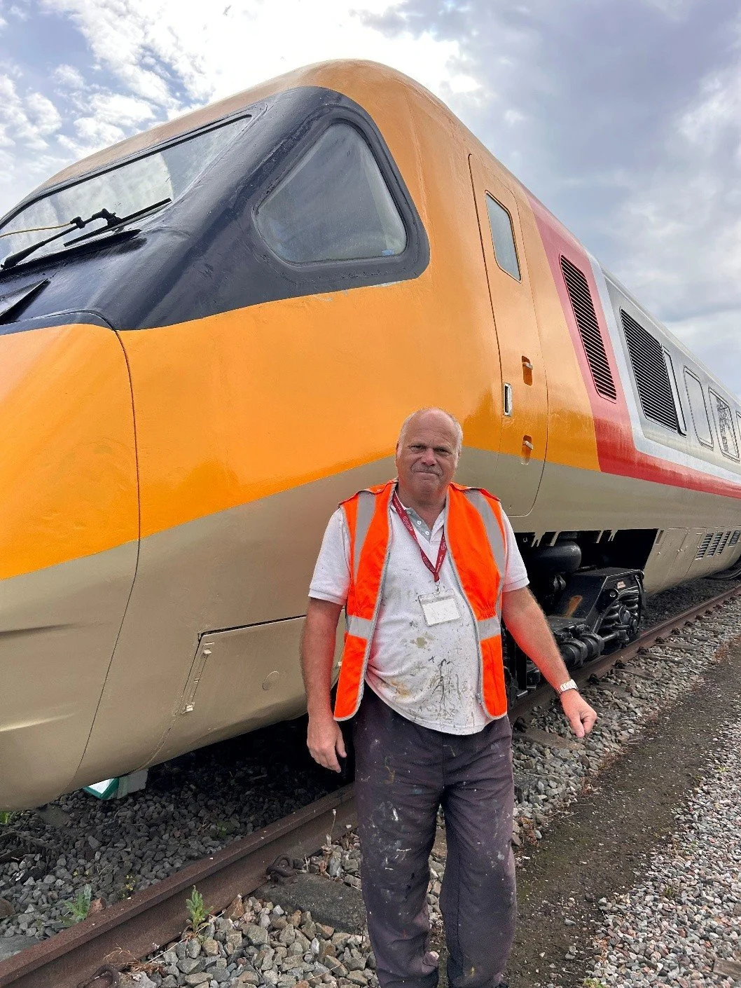 Brian, Museum Maintenance Assistant at Crewe Heritage Centre next to the APT-P © Crewe Heritage Trust