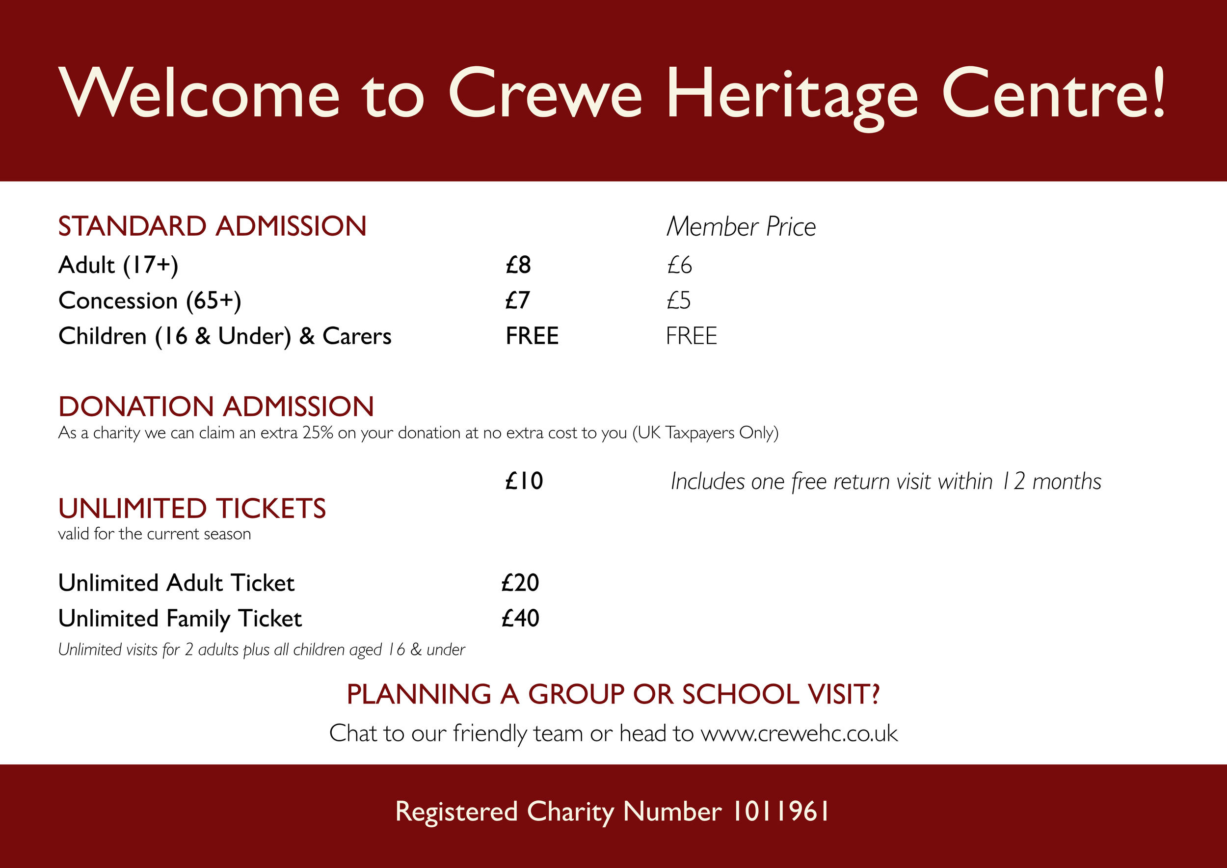 We're please to offer free admission for Heritage Railway Association Privilege Pass holders, please remember to bring your pass with you to the museum. This offer can not be used in conjunction with any other offer. Please speak with the Heritage Railway Association management team for more information.